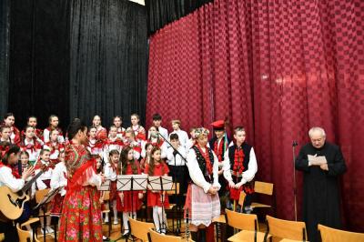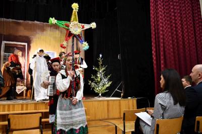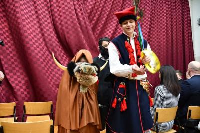 Po powitaniu gości przez wójta gminy Marcina Kiwiora i dyrektor szkoły Edytę Piotrowską, zebrani obejrzeli przygotowany przez uczniów i nauczycieli montaż słowno-muzyczny.
