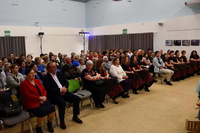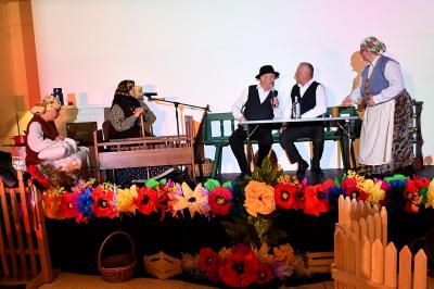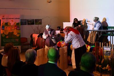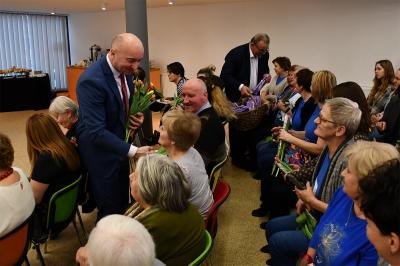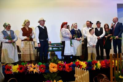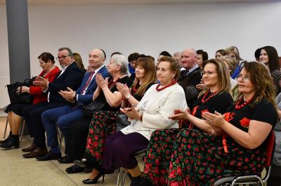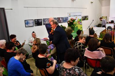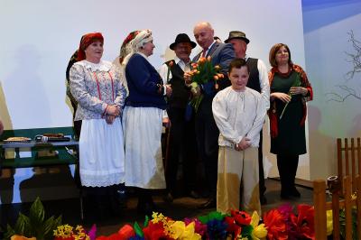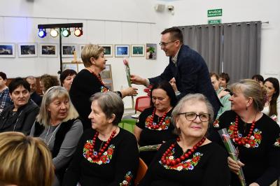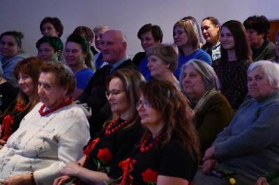 W trakcie wydarzenia nie zabrakło uśmiechów i życzeń. Panie obdarowane zostały kwiatami i słodkościami przez Marcina Kiwiora, wójta gminy Skrzyszów oraz Jerzego Sysłę, natomiast Radna Powiatu Tarnowskiego Magdalena Kopczyńska przekazała obraz z wizerunkiem Heleny Marusarzówny Szkole Podstawowej w Pogórskiej Woli. Na scenie zaprezentowała się Grupa Regionalna z Uszwi pod opieką niezawodnego Krzysztofa Ryndaka. Przedstawienie „Kawołka chłopa w chałupie nima” rozbawiło zebraną widownię do łez, przenosząc ją za sprawą aktorów i scenografii na polską wieś lat 50. XX w. Było zabawnie, poważnie i romantycznie.