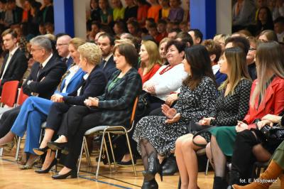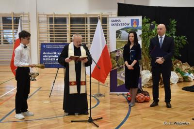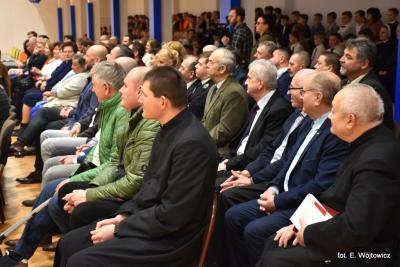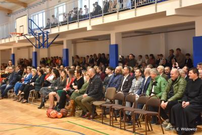 W uroczystym otwarciu hali udział wzięli m.in. przedstawiciele władz parlamentarnych, samorządowych i lokalnych placówek oświatowych, uczniowie, rodzice, księża.