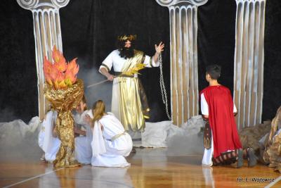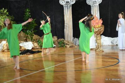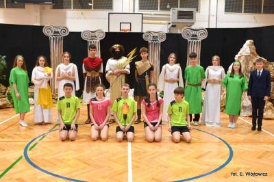 Społeczność szkolna za sprawą okolicznościowego przedstawienia przeniosła zebranych do mitycznego świata bogów greckich, gdzie po raz pierwszy zapłonął olimpijski ogień. Towarzyszy on sportowcom podczas igrzysk do dnia dzisiejszego. Ponadto przedstawiciele poszczególnych klas zaprezentowali przygotowany specjalnie na tę okazję taniec.