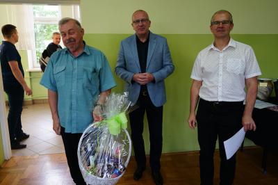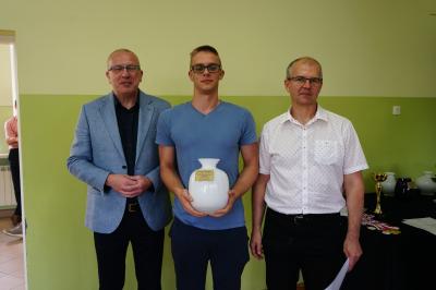 Uroczystego wręczenia nagród dokonali: Paweł Kasperek Sędzia Klasy Międzynarodowej oraz Robert Wadycki Dyrektor Szkoły Podstawowej nr 1 im. Jana Pawła II.