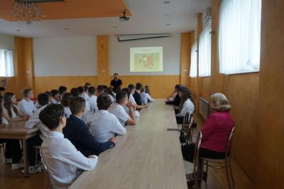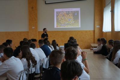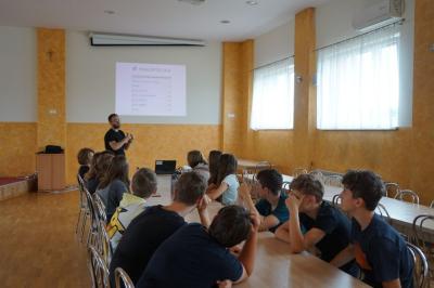 Druga część spotkania odbyła się w remizie OSP Skrzyszów, gdzie wyświetlona została prezentacja na temat wszystkich sołectw. Młodzież dowiedziała się m.in. które sołectwo jest najmniejsze pod względem powierzchni, a zarazem posiada największą liczbę mieszkańców czy jaki święty znajduje się na herbie Gminy Skrzyszów.