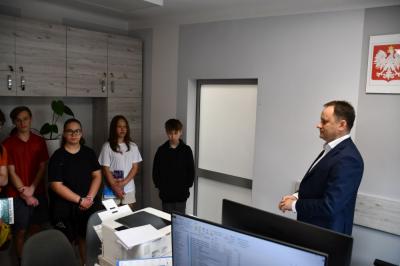 Dzień Dziecka w gminie Skrzyszów obfitował w wiele atrakcji. Jedną z nich była wizyta młodzieży klas VII w Urzędzie Gminy. Zebrani zapoznali się m.in. z pracą w poszczególnych referatach oraz dowiedzieli się jak załatwić najważniejsze sprawy urzędowe. Odbył się także konkurs wiedzy o gminie, a prawidłowe odpowiedzi nagrodzone zostały książkami.
