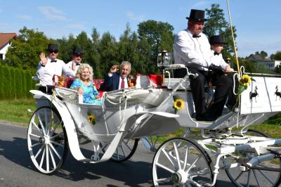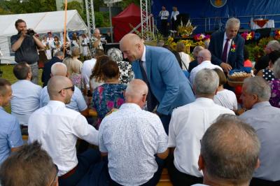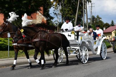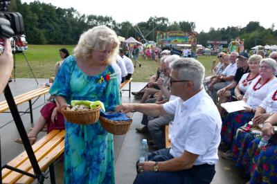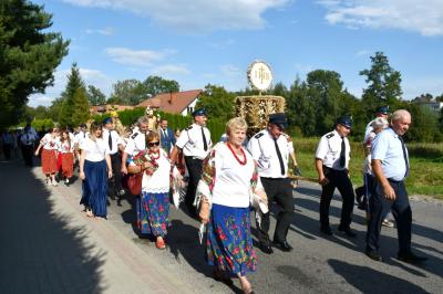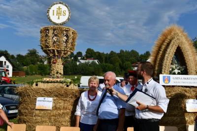 Niedzielne uroczystości rozpoczęły się Mszą św. w kościele pw. św. Mikołaja Biskupa, po której nastąpiło uroczyste otwarcie dożynek na placu przy szkole podstawowej. Po przywitaniu gości i przekazaniu chleba gospodarzowi gminy wójtowi Marcinowi Kiwiorowi, zaprezentowano starostów. W tym roku byli nimi Elżbieta Onik i Michał Łabędź.