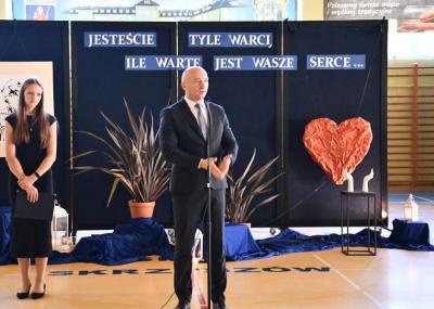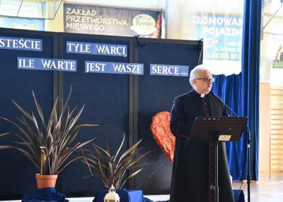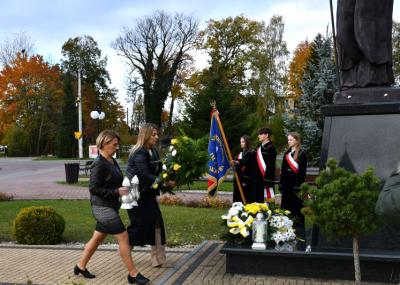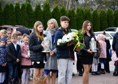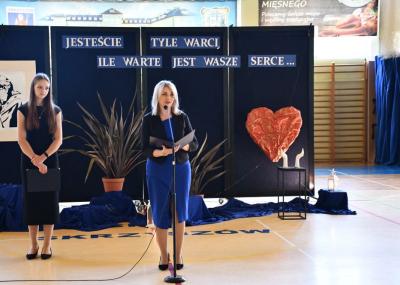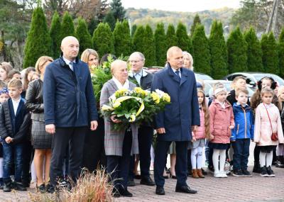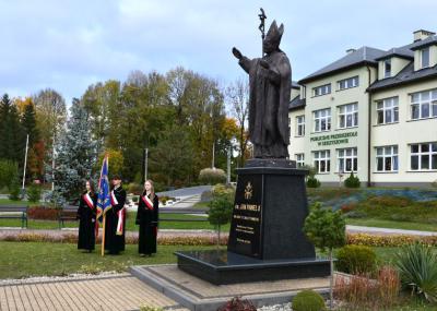 Następnie zebrani udali się przed pomnik Jana Pawła II, znajdujący się przy szkole, gdzie złożono kwiaty i zapalono znicze. Dalsza część uroczystości odbyła się na hali sportowej szkoły podstawowej. Hasłem przewodnim wydarzenia było przesłanie papieża Polaka: „Jesteście tyle warci, ile warte jest Wasze serce". W trakcie przemówień podkreślano m.in. ciągle aktualne nauki Jana Pawła II oraz wartości, takie jak miłość, wiara, pokój, którymi kierował się w życiu. Ponadto ciekawy montaż słowno-muzyczny w wykonaniu dzieci i młodzieży, śpiew szkolnego chóru, a także specjalna sceneria nadały wyjątkowej oprawy niniejszemu wydarzeniu.