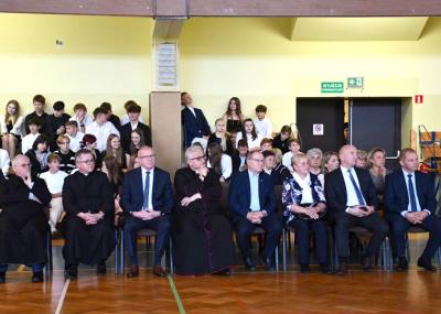 W środę 23 października 2024 r. społeczność skrzyszowskiej szkoły obchodziła święto patrona. Wydarzenie rozpoczęło się uroczystą Msza świętą w kościele parafialnym w Skrzyszowie, której przewodniczył ks. Jacek Nowak - proboszcz parafii w Tarnowie- Mościcach.