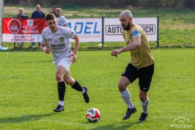 W pojedynku derbowym LKS Szynwałd przed własną publicznościom podejmował LKS Ładną. Mecz bardzo dobrze rozpoczął się dla gospodarzy. W 17 min Jakub Stach wrzucił piłkę zza linii bocznej do Patryka Pędraka, który precyzyjnym strzałem pokonał bramkarza gości, 1:0. W kolejnych minutach gra się wyrównała, jednak ostatnie słowo przed przerwą należało do LKS Ładnej. W 40 min Mateusz Kuta zagrał piłkę do Arkadiusza Szczerby, który wykorzystał moment zawahania w defensywie gospodarzy i precyzyjnym strzałem doprowadził do wyrównania, 1:1. W drugiej odsłonie rywalizacji zespoły starały się przechylić „szalę zwycięstwa” na swoją korzyść. W 63 min strzał Jakuba Trzpisa skutecznie „dobił” Arkadiusz Szczerba, wyprowadzając gości na prowadzenie w spotkaniu, 1:2. Gospodarze podrażnieni utratą kolejnej bramki w 72 min doprowadzili do wyrównania, po drugim trafieniu Patryka Pędraka, 2:2. Wynik remisowy utrzymywał się do ostatnich fragmentów spotkania. W doliczonym czasie gry Kamil Król dośrodkował futbolówkę w pole karne, piłka niefortunnie odbiła się od interweniującego obrońcy gospodarzy i wpadła do bramki, 2:3. LKS Szynwałd w końcowych fragmentach pomimo determinacji nie zdołał doprowadzić do wyrównania.