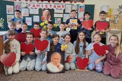 W środę 2 kwietnia br. obchodziliśmy 20. rocznicę śmierci Jana Pawła II. Z tej okazji w szkołach podstawowych na terenie naszej gminy odbyły się uroczystości upamiętniające Papieża Polaka.