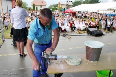 Po przywitaniu gości i przekazaniu chleba gospodarzowi gminy, nastąpił obrzęd wieńca dożynkowego oraz występ Zespołu Pieśni i Tańca „Zamojszczyzna”. Była to znakomita okazja, aby poznać folklor kolejnego regionu Polski.