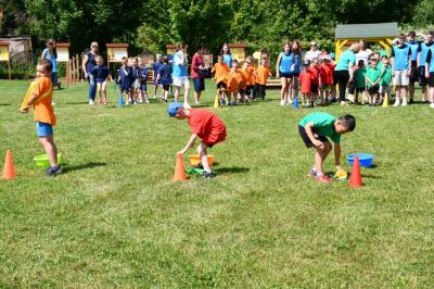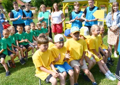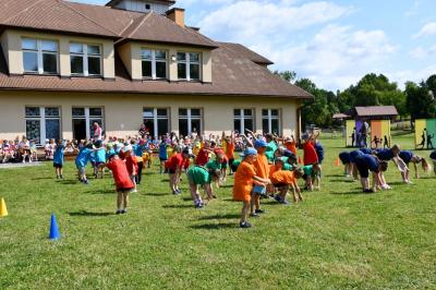Młodzi mieszkańcy wzięli udział m.in. w zawodach biegowych w workach, w biegach z piłeczką na łyżce, w zabawach z chustą animacyjną. Przedszkolaki były w ciągłym ruchu, udowadniając, że mają niespożytą energię, mnóstwo sił i zapału do ćwiczeń. Dzieci wspierane były przez nauczycieli, ale także przez uczniów łękawickiej szkoły, którzy spieszyli z pomocą w trakcie licznych konkurencji.