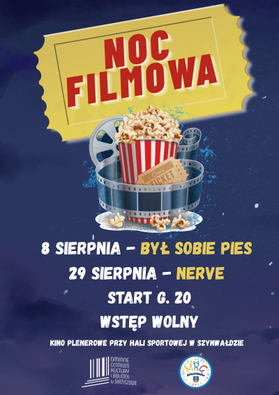 Młodzieżowa Rada Gminy Skrzyszów serdecznie zaprasza na „Noce Filmowe”, które odbędą się 8 i 29 sierpnia 2025 r. przy hali sportowej SP nr 1 w Szynwałdzie.