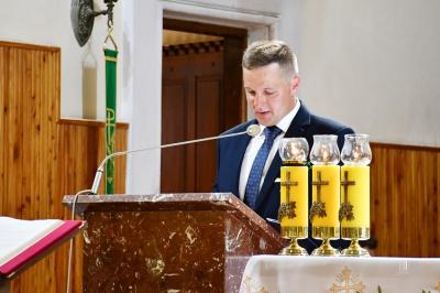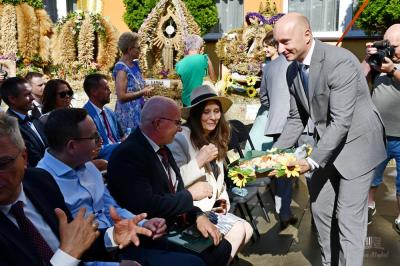 Na dożynki do gminy Skrzyszów przybył m.in. sołtys wsi Pokrzywna Janusz Bojkowski, aby podziękować mieszkańcom naszej gminy, zaangażowanym w pomoc podczas powodzi, która w październiku ubiegłego roku nawiedziła gminę Głuchołazy.
