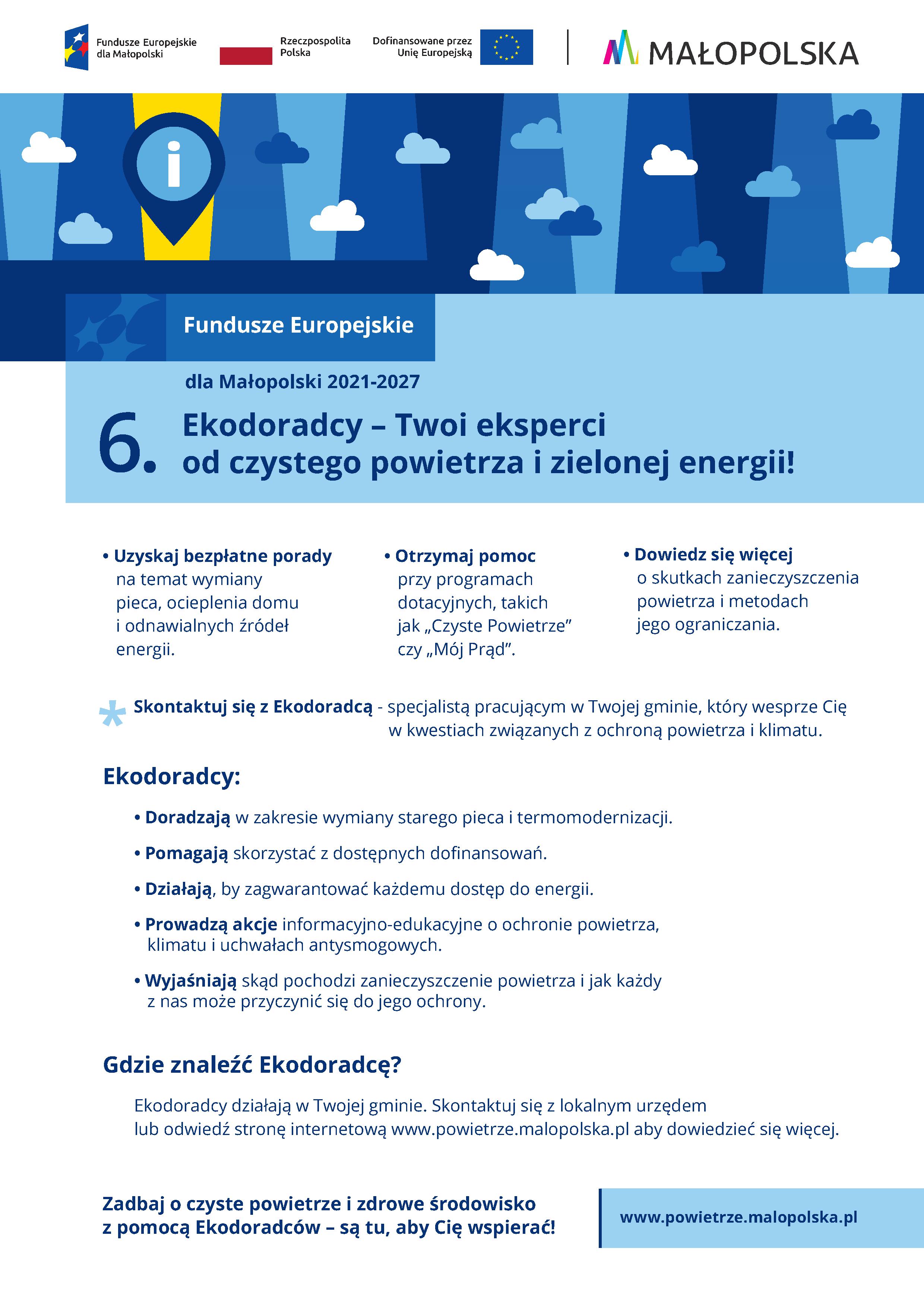 Zorganizowano w ramach projektu: „Wdrożenie Programu Ochrony Powietrza w Gminie Skrzyszów” w ramach programu „Fundusze Europejskie dla Małopolski 2021-2027”.