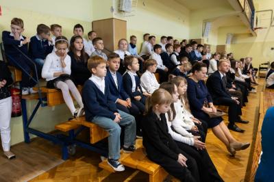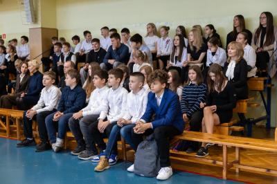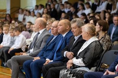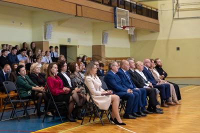 Następnie uczniowie, nauczyciele, rodzice i przyjaciele szkoły zgromadzili się na hali sportowej, gdzie miała miejsce dalsza część uroczystości. Wśród zaproszonych gości znaleźli się m.in. wójt gminy Marcin Kiwior, zastępca wójta Robert Wadycki, przewodniczący rady gminy Piotr Kiwior wraz z radnymi, sołtys Halina Mondel, przedstawiciele instytucji gminnych, dyrektorzy szkół i przedszkoli oraz byli nauczyciele i pracownicy szkoły.