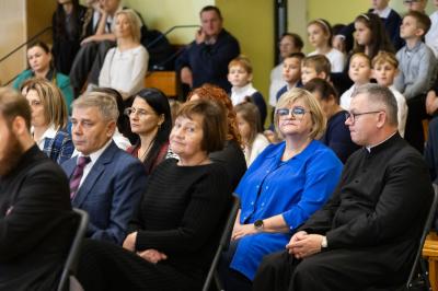 Ksiądz Marcin Wojtal, absolwent skrzyszowskiej szkoły, w niezwykle ciekawy sposób przybliżył historię wyboru imienia „Jan Paweł” przez papieża, wyjaśniając jego symbolikę, w nawiązaniu do historii kościoła.
