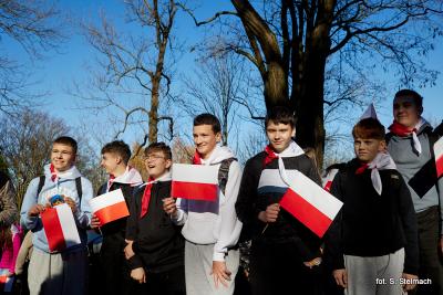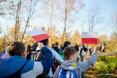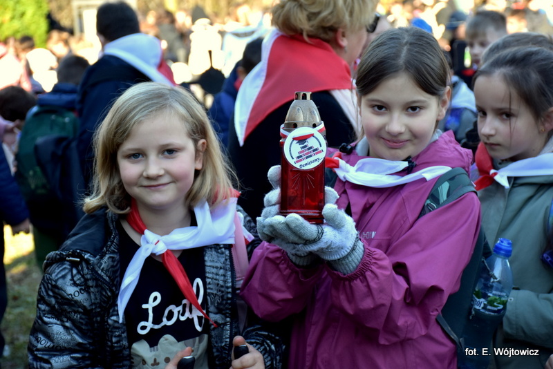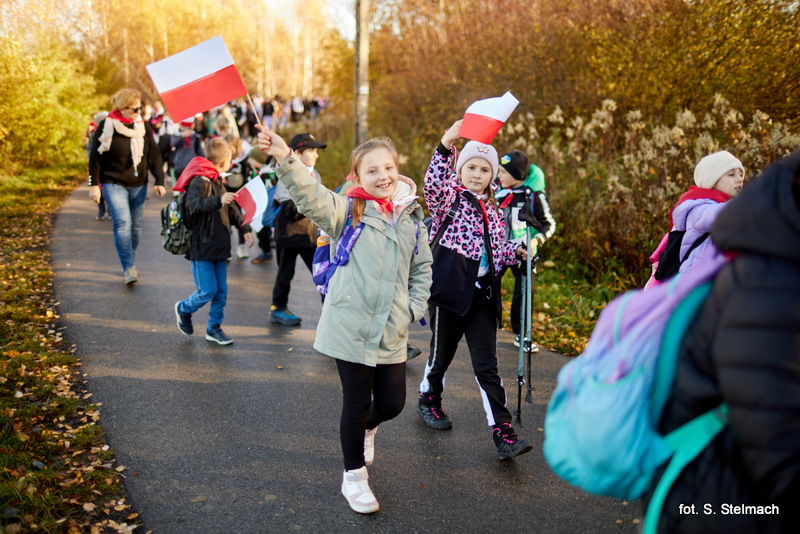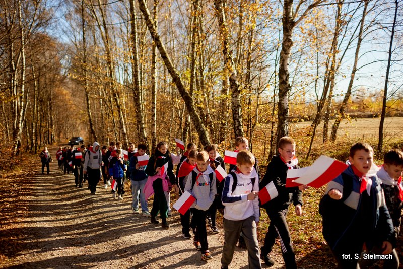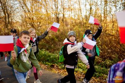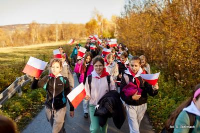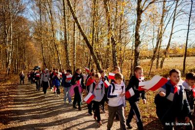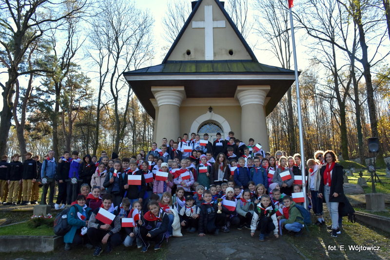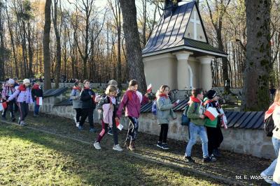 Młodzież wyruszyła z samego rana, by uczcić zbliżające się Święto Niepodległości. Celem wędrówki było uczestnictwo w uroczystościach na Cmentarzu Legionistów, gdzie uczniowie zaopatrzeni w symbole narodowe i ze śpiewem na ustach oddali hołd poległym w obronie Ojczyzny. Aktywny patriotyzm, chęć poznania historii, odwiedzenie miejsc Pamięci oraz wspólna modlitwa za Polskę pozwoliły uczestnikom rajdu w wyjątkowy sposób uczcić tę ważną rocznicę. Uczniowie zdobyli również puchar za najliczniejszy udział w Złazie.