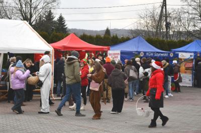 Jak co roku koła gospodyń wiejskich i stowarzyszenia zaprezentowały swoje wyroby. Można było skosztować m.in. barszczu czerwonego z pasztecikami, kapuśniaku, bigosu, chleba ze smalcem. W ofercie nie zabrakło ozdób świątecznych, a także słodkich wypieków. Tak jak bywało w ubiegłych latach, wójt gminy Marcin Kiwior wraz z pomocnikami serwowali gorącą czekoladę.