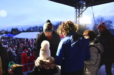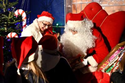 Punktem kulminacyjnym jarmarku był oczywiście przyjazd św. Mikołaja z prezentami. Licznie zgromadzone dzieci czekały na ten moment z niecierpliwością. Przywitały Mikołaja i Mikołajową głośnymi okrzykami i brawami. Następnie ustawiły się w kolejce, aby otrzymać prezent i zrobić sobie pamiątkowe zdjęcie.