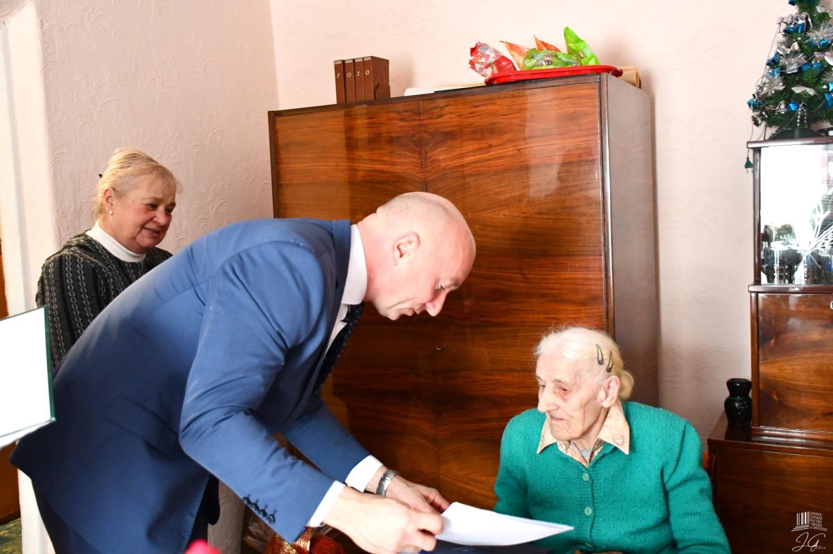 Solenizantkę odwiedzili wójt gminy Marcin Kiwior, sołtys Skrzyszowa Halina Mondel, a także przedstawiciele Zakładu Ubezpieczeń Społecznych w Tarnowie, składając jubilatce najlepsze życzenia. Pani Adolfina otrzymała kwiaty, upominki oraz listy gratulacyjne.