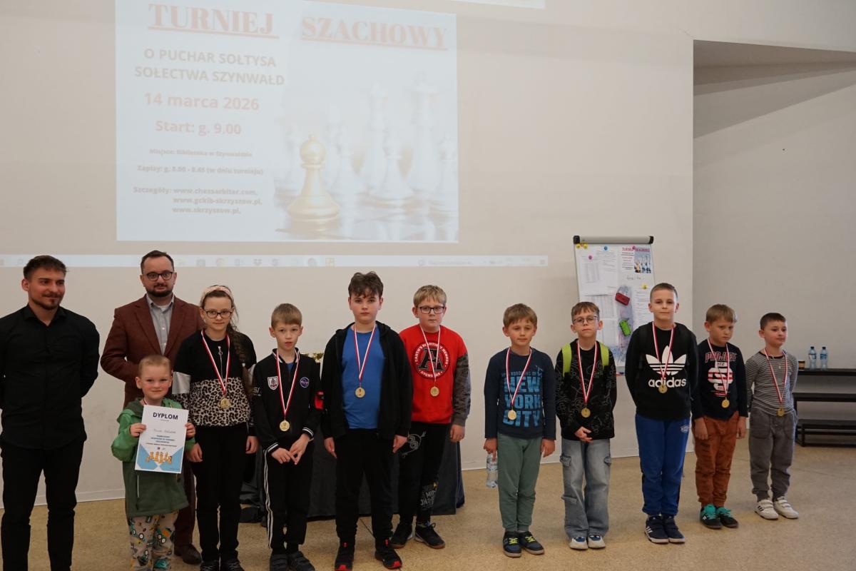 W sobotę 14 marca 2026 r. w Bibliotece Publicznej w Szynwałdzie odbył się turniej szachowy o „Puchar Sołtysa Sołectwa Szynwałd”. Zawody rozpoczęły się uroczystym otwarciem przez Sołtysa Szynwałdu, Dariusza Niemca. Rywalizacja toczyła się w systemie szwajcarskim na dystansie 9 rund w tempie P-10. W zawodach wystartowało 35 zawodników z terenu gminy Skrzyszów oraz pasjonatów „królewskiej gry” z Radomyśla Wielkiego, Leżajska oraz Łęki Siedleckiej. Po bardzo emocjonujących zawodach zwyciężył Mateusz Walocha 8 pkt (Tuchów), drugie miejsce wywalczył Dawid Łabędź 8 pkt (Łękawica), natomiast na najniższym stopniu podium uplasował się Marek Lis 6 pkt (Pawęzów). Najstarszym i najmłodszym uczestnikiem turnieju zostali mieszkańcy Skrzyszowa Antoni Smoła 3,5 pkt oraz Marcel Małochleb 3,5 pkt. Ponadto przyznano nagrody w następujących kategoriach: