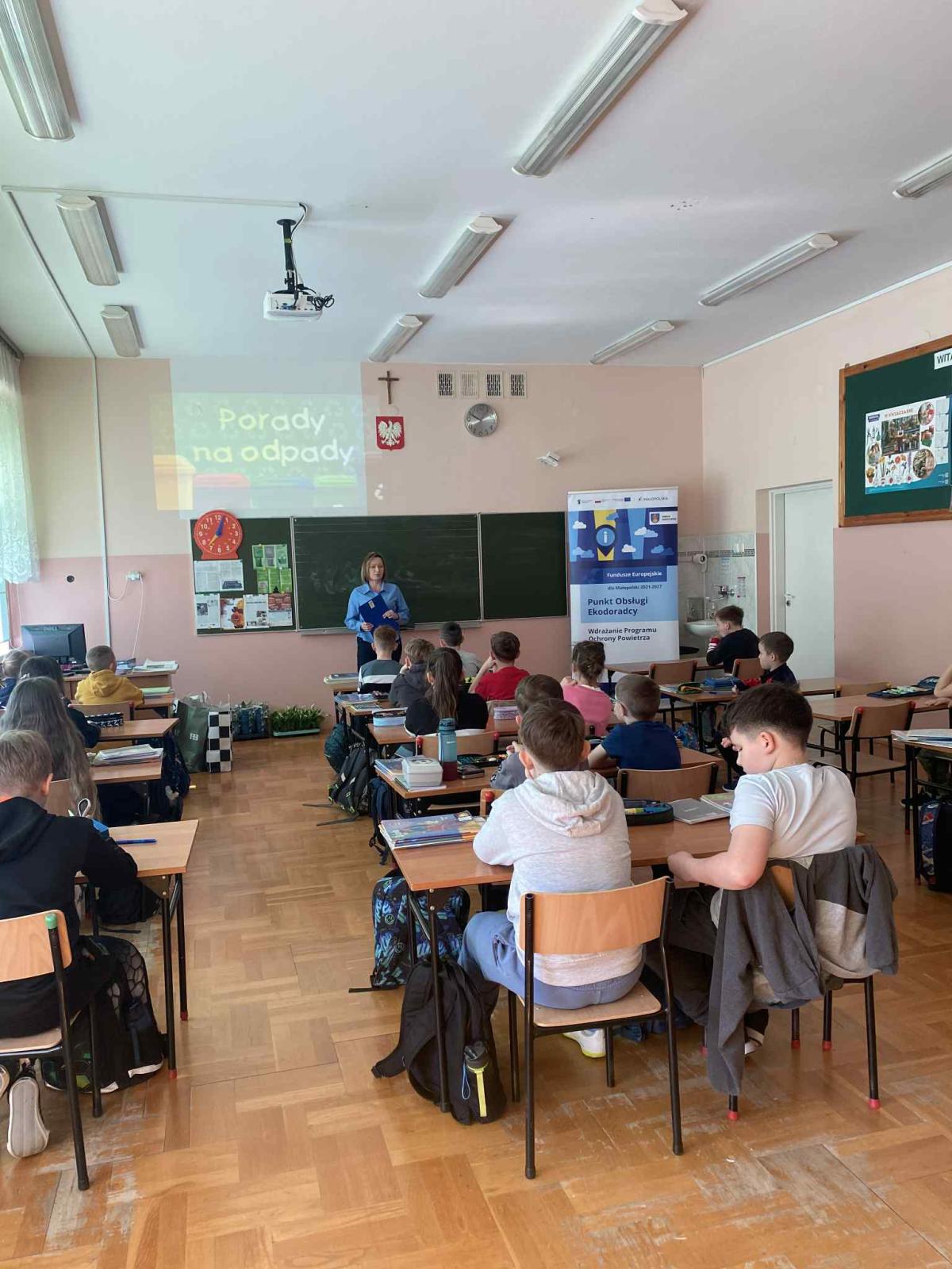 18 marca 2026 roku uczniowie klasy III Szkoły Podstawowej w Skrzyszowie wzięli udział w lekcji edukacyjnej w ramach akcji „Nie wyrzucaj – wykorzystaj”, poprowadzonej przez ekodoradców z Urzędu Gminy.
