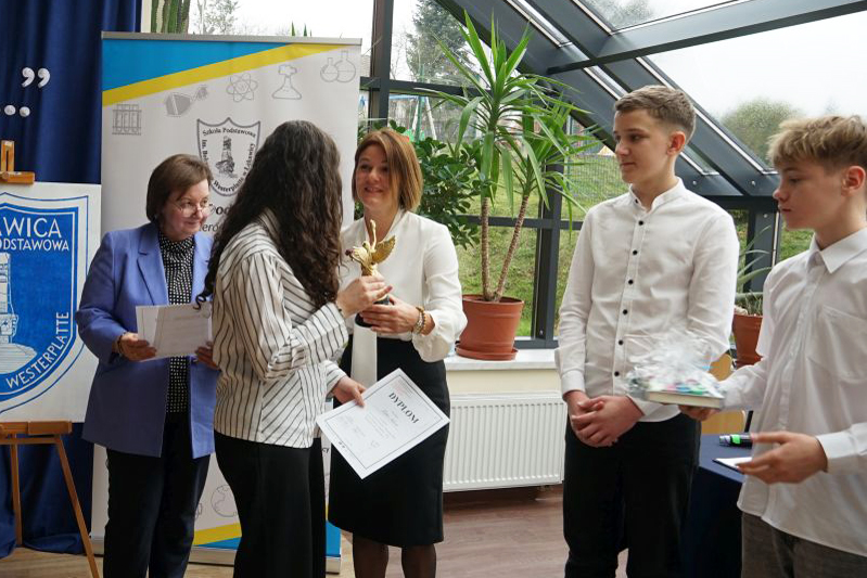 Uczestnicy konkursu otrzymali nagrody i wyróżnienia. Autorka wierszy, choć nie mogła ucczestniczyć w spotkaniu, otrzymała od Samorządu Uczniowskiego statuetkę "Wyróżnienie specjalne" z życzeniami zdrowia i wszelkiej pomyślności.