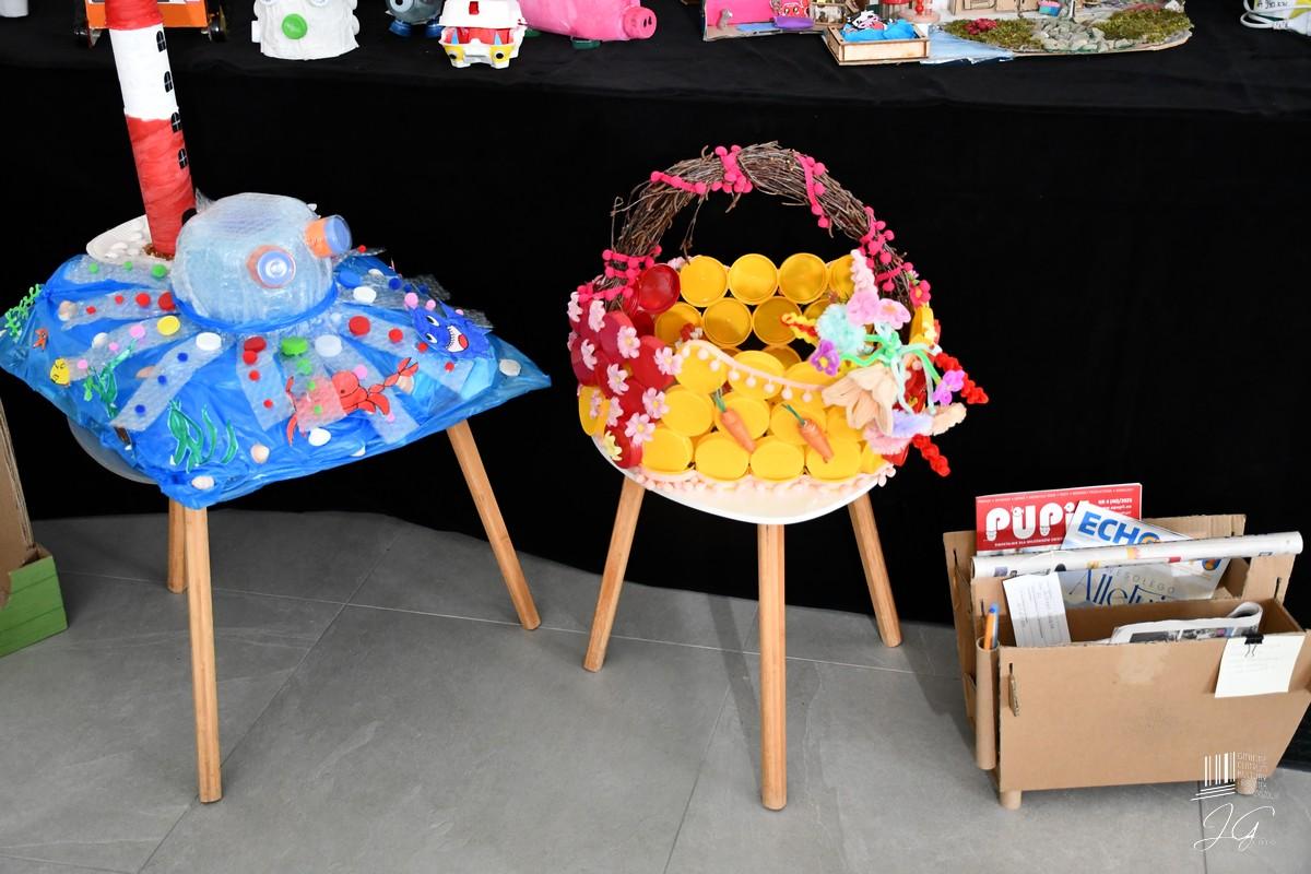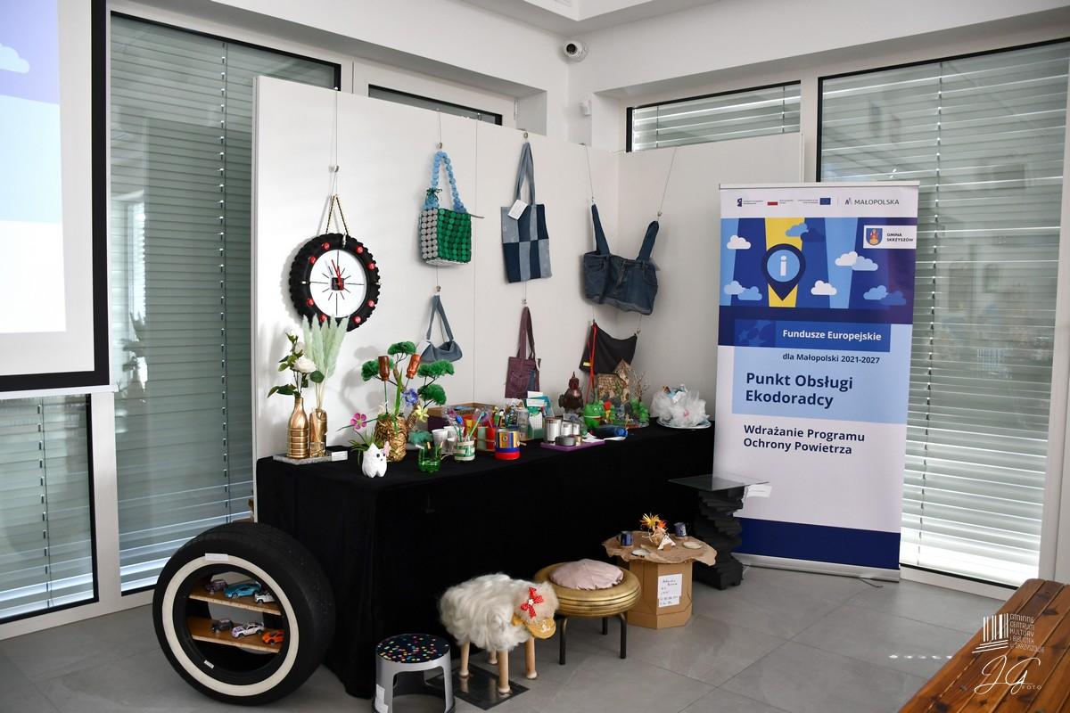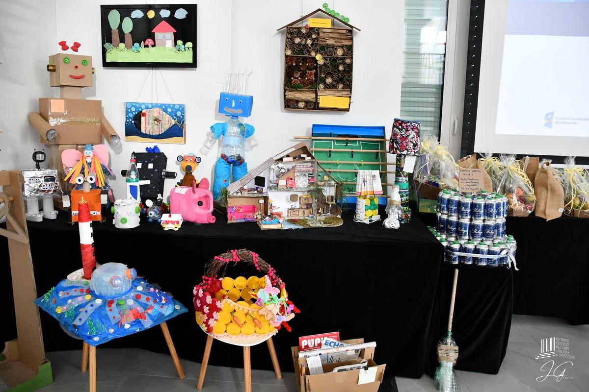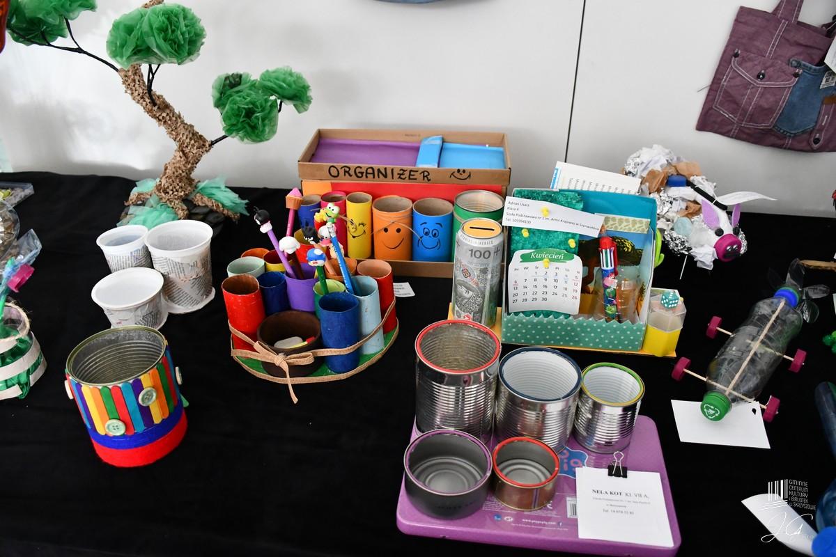 Na konkursowej wystawie można było zobaczyć między innymi domki dla ptaków, hotel dla owadów, skarbonki, lampy, organizery na biurka, ozdobne flakony ze starych butelek, torby a także niezwykle oryginalne przedmioty, takie jak zegar wykonany ze zużytej opony czy stolik  ze starych książek.