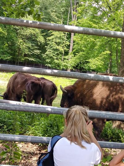 Zagroda Żubrów w Pszczynie pozwoliła przyjrzeć się z bliska żubrom. Największe ssaki zamieszkujące Europę, które sto lat temu były bliskie wyginięcia, zaprezentowały swoją siłę i majestatyczność. W zwierzyńcu można było także przyjrzeć się m.in. jeleniom, danielom i wolno przechadzającemu się pawiowi. Grupa odwiedziła także cmentarz wojenny „Pod Trzema Dębami”, gdzie pochowani są żołnierze 16. Pułku Piechoty Ziemi Tarnowskiej.