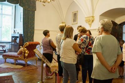 Pierwsza wakacyjna wycieczka zorganizowana przez Gminne Centrum Kultury i Bibliotek odbyła się 14 lipca br. do Pszczyny. W trakcie wyjazdu mieszkańcy gminy Skrzyszów zwiedzili Muzeum Zamkowe. Wnętrza, które w 80% posiadają oryginalne wyposażenie, zrobiły olbrzymie wrażenie. Można było zobaczyć m.in. kwaterę, w której mieszkał cesarz niemiecki Wilhelm II w trakcie I wojny światowej oraz bibliotekę, jadalnię i apartamenty prywatne pary książęcej.