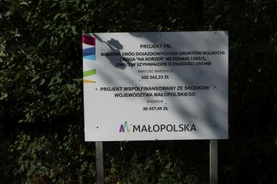 W 2022 r. zostało zrealizowane zadanie dofinansowane ze środków budżetu Województwa Małopolskiego związanych z wyłączeniem z produkcji gruntów rolnych.