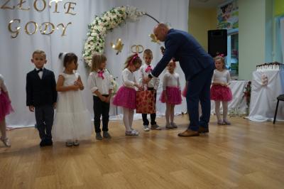 W czwartek 19 października 2023 r., w Przedszkolu Publicznym w Skrzyszowie odbyła się uroczystość z okazji jubileuszu 50-lecia pożycia małżeńskiego par z terenu gminy Skrzyszów. Małżeństwa otrzymały z rąk wójta Marcina Kiwiora listy gratulacyjne. Gospodarz naszej gminy wreczył także medale, które zostały przyznane przez Prezydenta RP. Panie otrzymały róże wręczone przez księdza Tomasza Lelitę, proboszcza parafii pw. Świętego Stanisława BM w Skrzyszowie. Wydarzenie uświetnił występ przedszkolaków, które zaprezentowały ciekawy program artystyczny, a także zaprosiły gości do tańca.