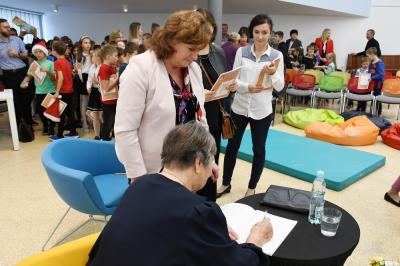 Wójt gminy Marcin Kiwior przywitał wszystkich gości, wspomniał m.in., że sam kiedyś był uczniem Elżbiety Stepskiej-Kot. Uczniowie ze Szkoły Podstawowej nr 1 im. Jana Pawła II w Skrzyszowie zaprezentowali znane i lubiane bajki w innej, zabawnej odsłonie. W trakcie spotkania, autorka podzieliła się z zebranymi informacjami na temat nowej książki i przeczytała jeden ze swoich wierszy. Podkreśliła, że kocha dzieci i to właśnie im dedykuje najnowszą publikację. Opowiedziała m.in. o swoim niełatwym dzieciństwie oraz o wspaniałych czasach, gdy uczęszczała do szkoły podstawowej w Szynwałdzie.