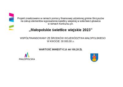W sołectwie Łękawica utworzona została świetlica wiejska, która zlokalizowana jest w siedzibie KGW „Czerwone Korale”. Zadanie jest współfinansowane ze środków finansowych Województwa Małopolskiego w ramach konkursu pn. „Małopolskie świetlice wiejskie 2023".