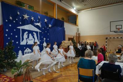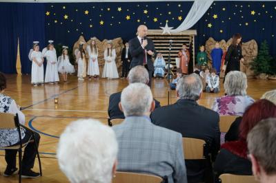 Uczestnicy wydarzeń zostali powitani przez wójta gminy Marcina Kiwiora oraz dyrektorów poszczególnych szkół. Przygotowane przez uczniów i nauczycieli okolicznościowe przedstawienia, wprowadziły zebranych w radosny i klimatyczny nastrój. Seniorzy zasiedli przy wspólnym stole, ciesząc się obecnością znajomych, przyjaciół. Nie zabrakło rozmów, uśmiechów, a nawet wspomnień.