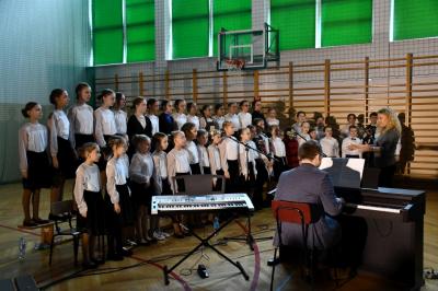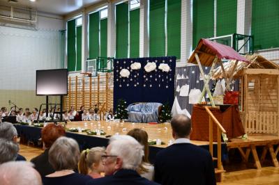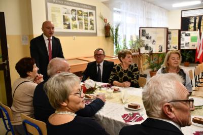 Uczestnicy wydarzenia zostali powitani przez wójta gminy Marcina Kiwiora oraz dyrektor szkoły Reginę Kiwior. Uczniowie wprowadzili zebranych w wyjątkowy nastrój za sprawą okolicznościowego przedstawienia, w pięknie przygotowanej scenerii. Dzień ten uświetnił także występ chóru „Moderato”, pod przewodnictwem Anety Mikuś i Pawła Nowaka.