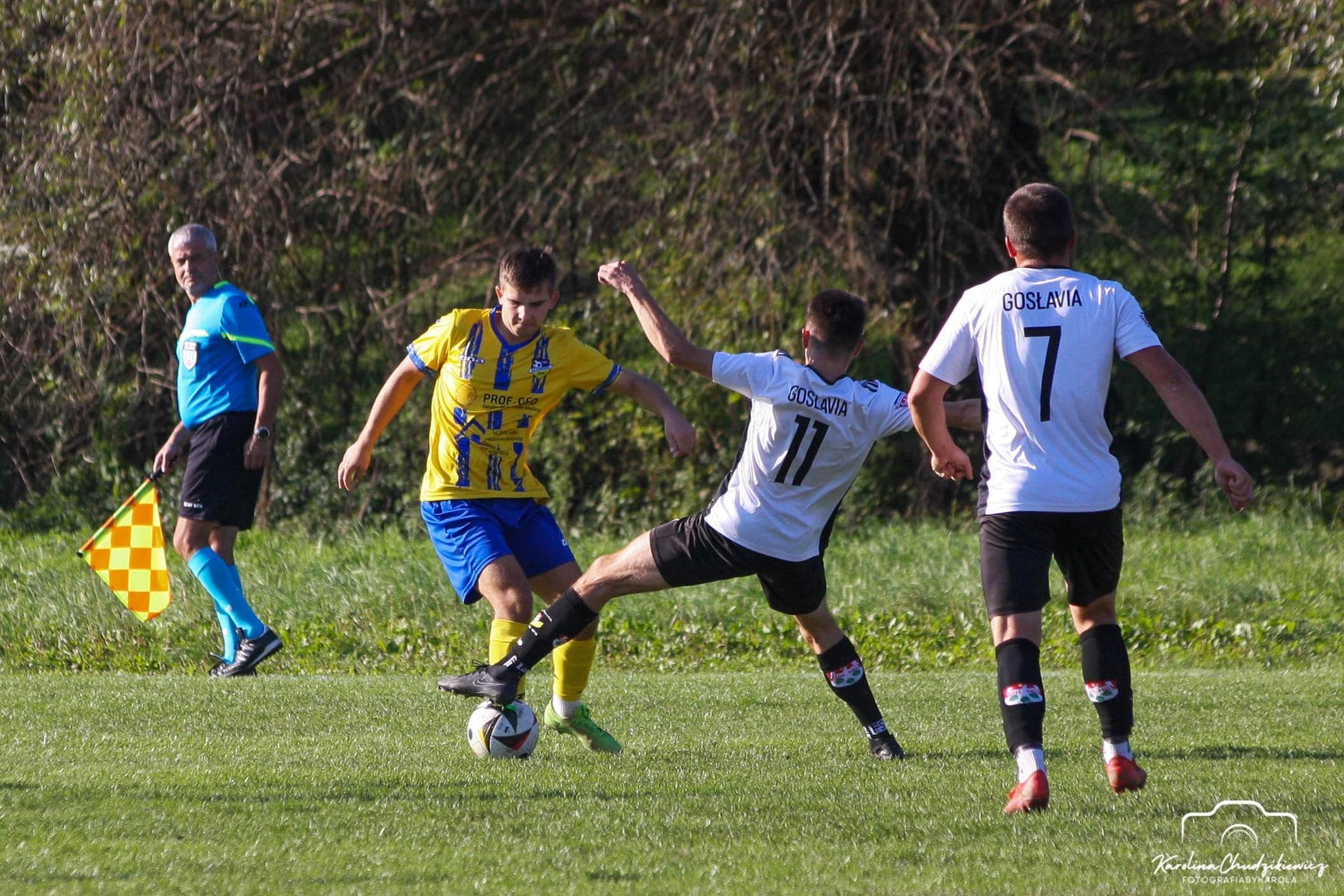 LKS Szynwałd w meczu wyjazdowym podejmował Gosłavię Gosławice. Spotkanie od pierwszych minut rozgrywane było pod dyktando gospodarzy. W 6 min podanie Dawida Cicha wykorzystał Józef Wróbel, otwierając wynik spotkania. W kolejnych minutach gospodarze „poszli za ciosem”. W 13 min jedenastkę na bramkę zamienił Dominik Kwater, podwyższając prowadzenie. W 24 min sędzia ponownie wskazał na „wapno” w polu karnym gości. Ponownie do piłki podszedł Dominik Kwater, zdobywając drugie trafienie na 3:0. Po stronie gospodarzy przed przerwą dwa trafienia zanotował Dawid Cich w 25 i 43 min spotkania, ustalając wynik w pierwszej połowie. LKS Szynwałd po zmianie stron, nie mając nic do stracenia, starał się zmniejszyć stratę do rywala, jednak w tym pojedynku goście nie potrafili zdobyć bramki. Gosłavia Gosławice w drugiej połowie zanotowała dwa trafienia Dominika Hałuna w 56 min i Dominika Kwatera w 58 min spotkania na 7:0, ustalając wynik spotkania.