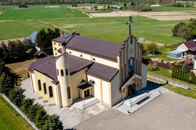 Na początku istnienia parafii nabożeństwa odbywały się w punkcie katechetycznym a potem na korytarzu szkolnym. Dzięki ofiarności i pracy mieszkańców a także wsparciu sąsiednich parafii w ciągu 15 miesięcy od wykopania fundamentów część kościoła (kaplica) była oddana do użytku. 11 sierpnia 1991 roku aktu poświęcenia kaplicy dokonał ksiądz biskup J.Styrna.