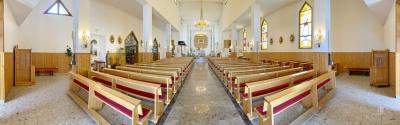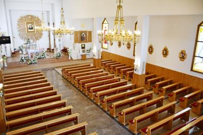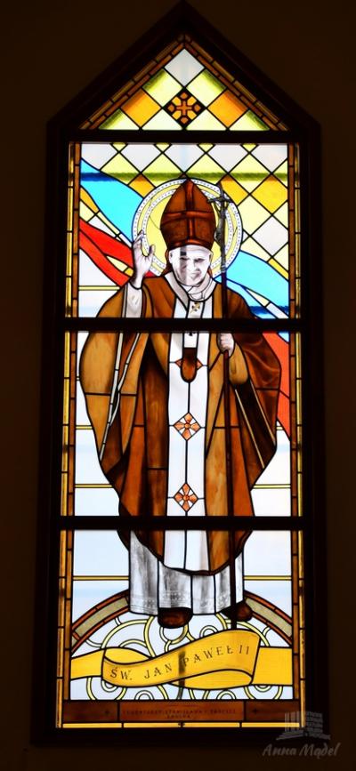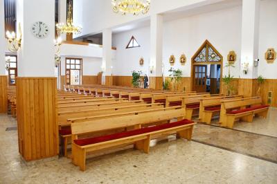 Jest to świątynia trzynawowa. Na zewnętrznej, frontowej ścianie, znajduje się fresk przedstawiający Przemienienie Pańskie na górze Tabor, powyżej zegar i krzyż. W oknach witraże, przedstawiające św. Jana Pawła II i bł. kardynała Stefana Wyszyńskiego. W ołtarzu głównym obraz Przemienienia Pańskiego.