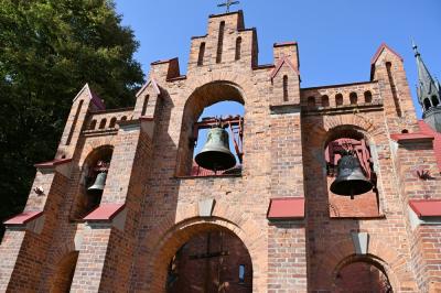 Przed wejściem do świątyni znajduje się trójdzielna, arkadowa dzwonnica wybudowana w 1925 r., mieszcząca trzy dzwony. Jeden z dzwonów pochodzi z włoskiej odlewni w Udine, pozostałe z odlewni dzwonów Felczyńskich w Przemyślu. Obok ustawiony został krzyż jubileuszowy z emblematem Wielkiego Jubileuszu Odkupienia Roku 2000.