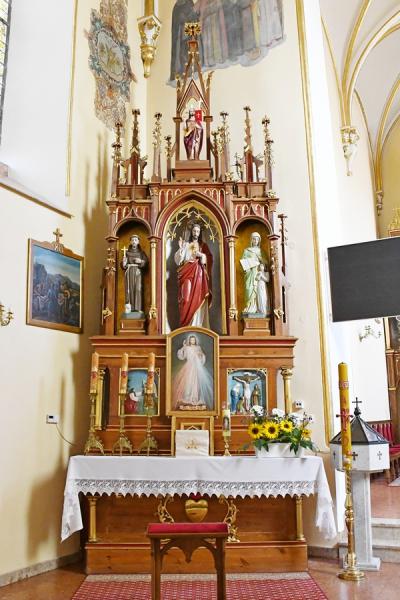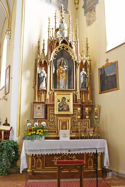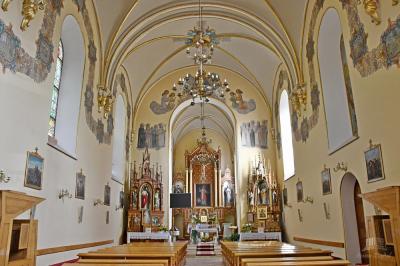 Świątynia została konsekrowana w 1922 r. Pod koniec lat 30. XX w. zamontowano witraże, wykonane w Zakładzie Witrażów S.G. Żeleński w Krakowie, które zaprojektowali Jan Śliwiński i Stefan Matejko. W 1956 r. Paweł Mitka wykonał polichromię figuralno-ornamentalną wnętrza. Na ołtarzu głównym znajduje się obraz św. Mikołaja z 1782 r. Kościół posiada organy piszczałkowe, jedenastogłosowe.